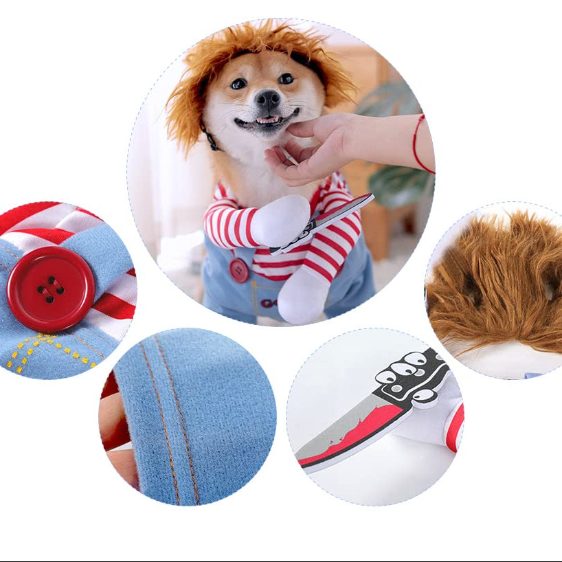 Juego de rol para mascotas, La muñeca asesina es un divertido accesorio de juego de rol, hace que tu mascota sea más linda y llévela a ti y a tu mascota. Accesorios lindos, ambiente más festivo, tejidos cómodos, adecuados para todas las estaciones.